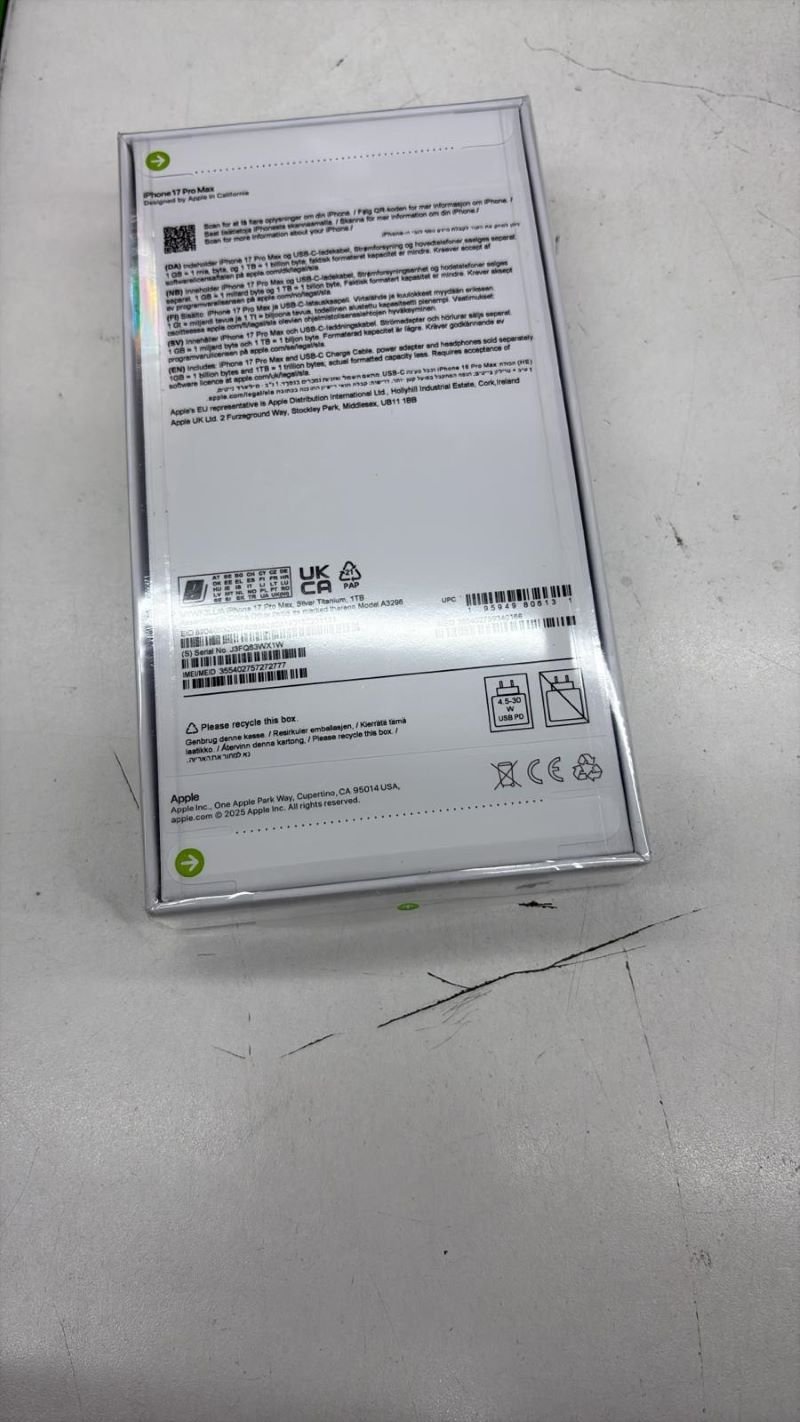 Experience ultimate performance with the new iPhone 17 Pro Max 1TB — featuring the ultra-fast A19 Pro chip, stunning 6.9″ Super Retina XDR display, pro-level triple 48 MP camera system, and massive 1 TB storage for all your photos, videos, and apps.