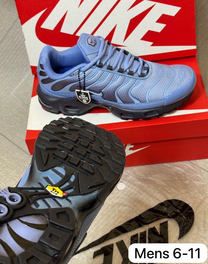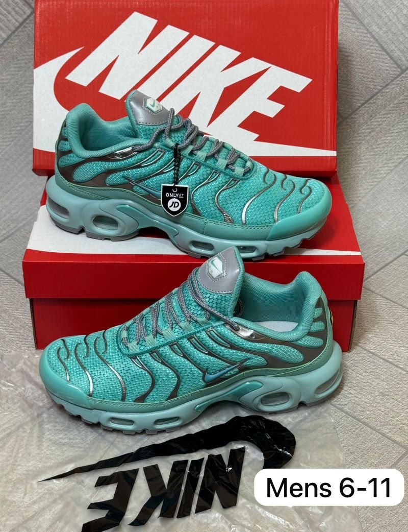 Iconic Men’s Nike TNs featuring Tuned Air cushioning, breathable mesh, and a bold wavy design — perfect for streetwear and everyday style.